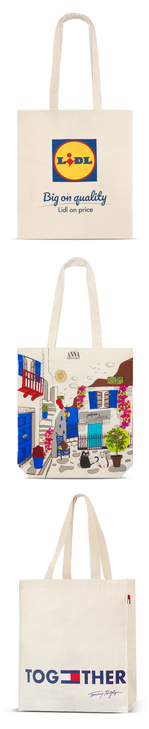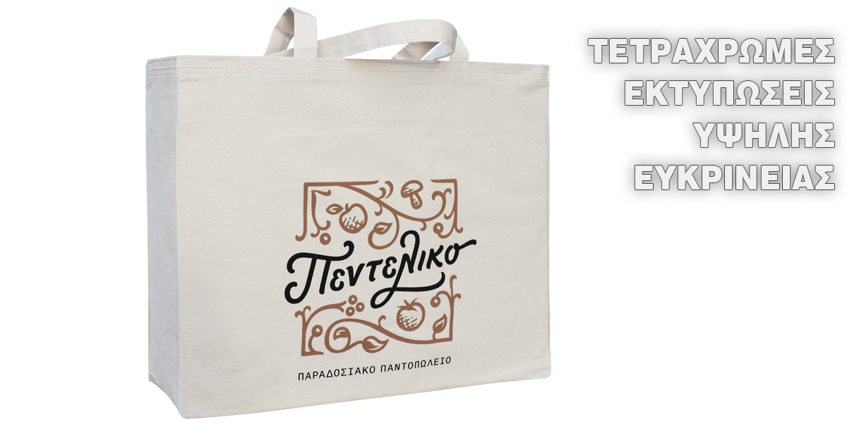 Στο cottonbags.gr ΔΕΝ περιορίζουμε τον πελάτη σε τυποποιημένες διαστάσεις και έτοιμες κατασκευές. Του δίνουμε την δυνατότητα να δημιουργήσει την τσάντα σύμφωνα με τις δικές τους απαιτήσεις, διαστάσεις, υλικά, τρόπους ραφής, χρώματα, χερούλια, τεχνοτροπία εκτύπωσης.
