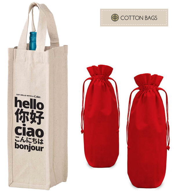 Υφασμάτινες τσάντες για ποτά και μπουκάλια, οικολογικές 100% βαμβακερές (ποτών - μπουκαλιών).